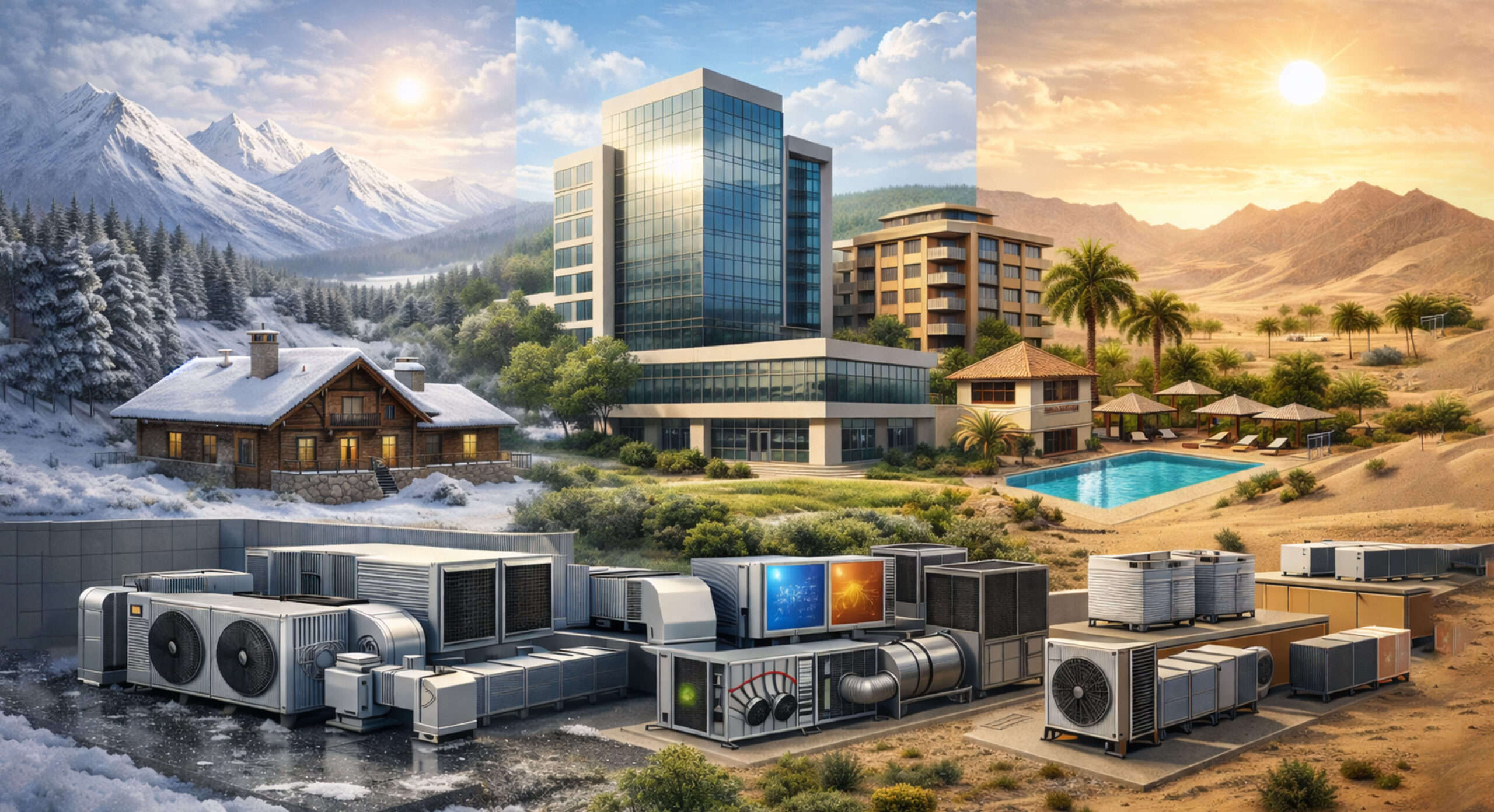 اقلیم یکی از تعیینکنندهترین عوامل در انتخاب ظرفیت سیستم تهویه مطبوع است. یک ساختمان با مشخصات مشابه، در دو اقلیم متفاوت، نیاز کاملاً متفاوتی خواهد داشت.